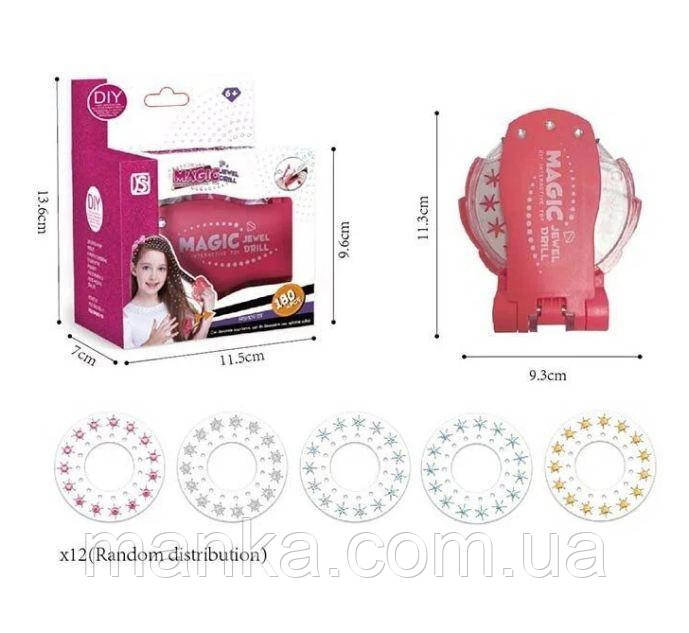 Набір з кристалами для волосся 897 B машинка для приклеювання страз, 12 різновидів